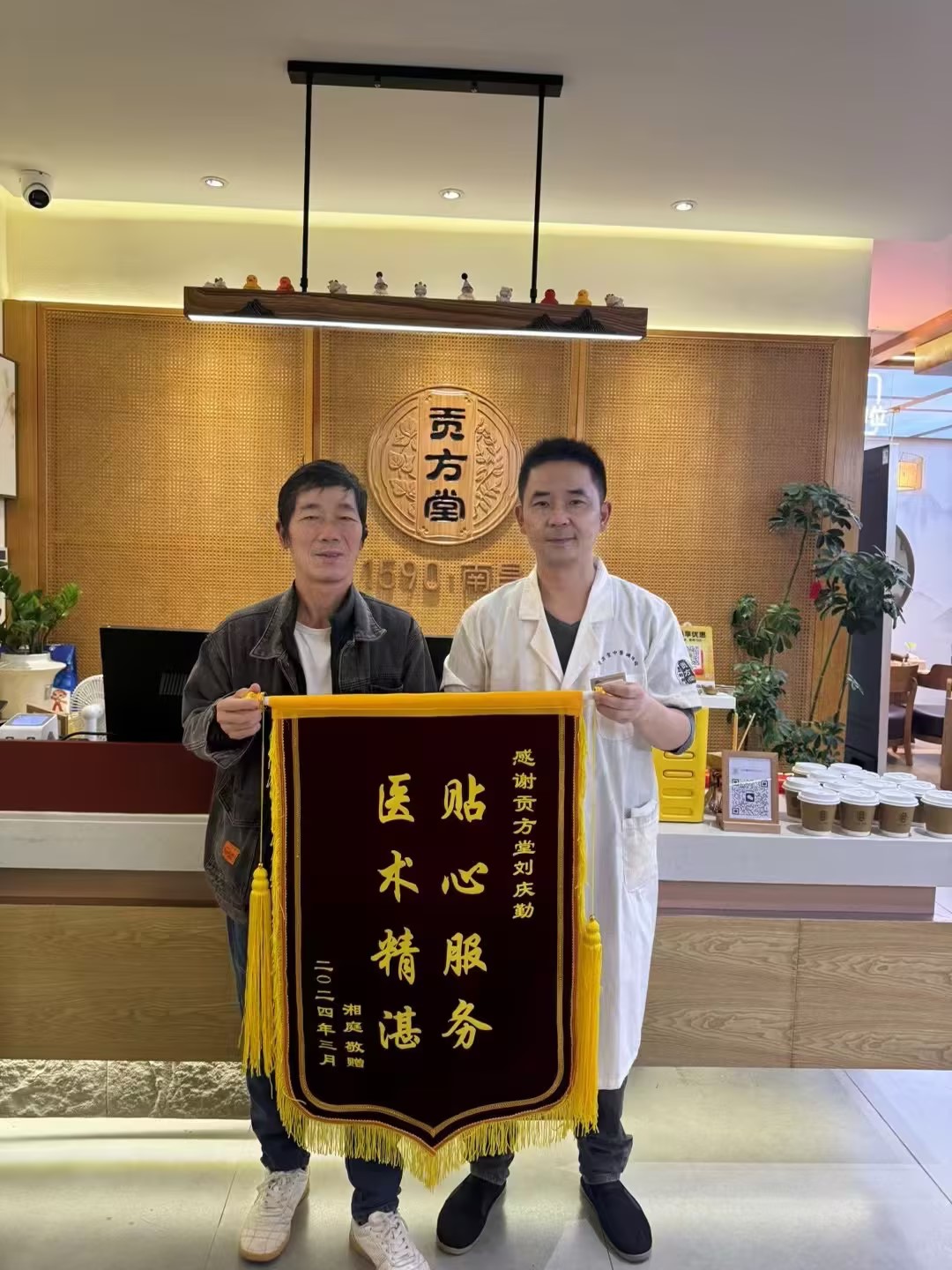 经过一周左右的连续治疗后,彭女士感觉肩膀的疼痛减轻了大半,活动范围也逐步恢复。现如今介绍自己父亲过来调理,并为贡方堂刘庆勤老师送上锦旗一枚,表示感谢!