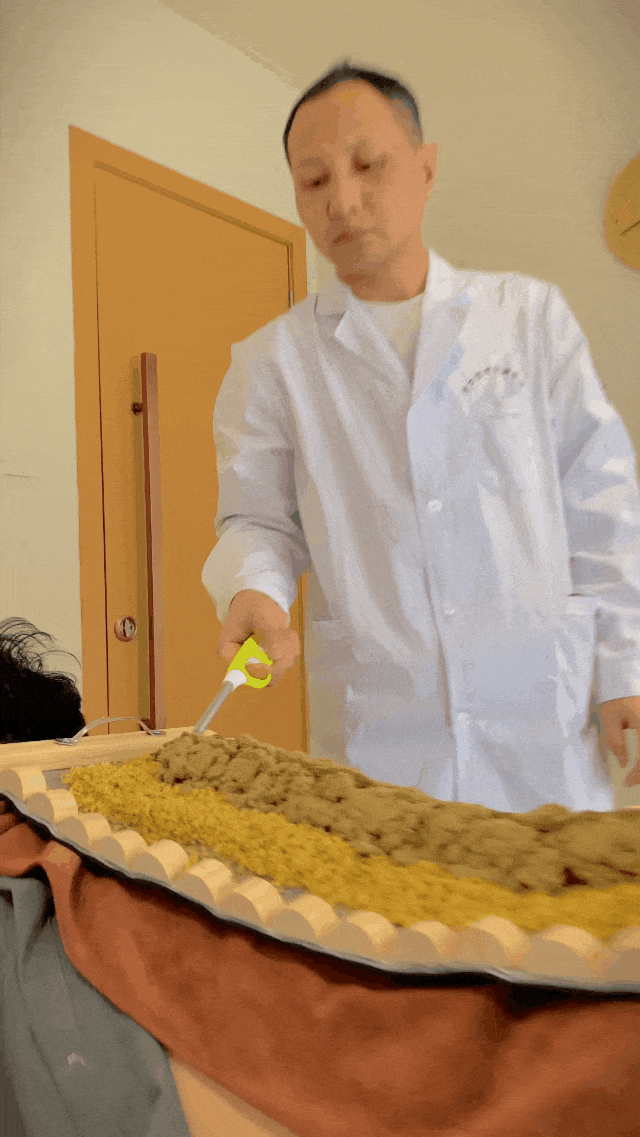 督脉灸是中医传统艾灸疗法的一种。适用于阳虚体质、易感冒和有顽固性寒湿痹痛的人群,督脉灸是霜降时节的“黄金疗法”。在背部督脉(脊柱)上铺上姜末、艾绒进行施灸,热力强大,能温通一身之阳气。进行一次督脉灸,犹如给身体注入一股暖流,为整个冬季储备充足阳气。