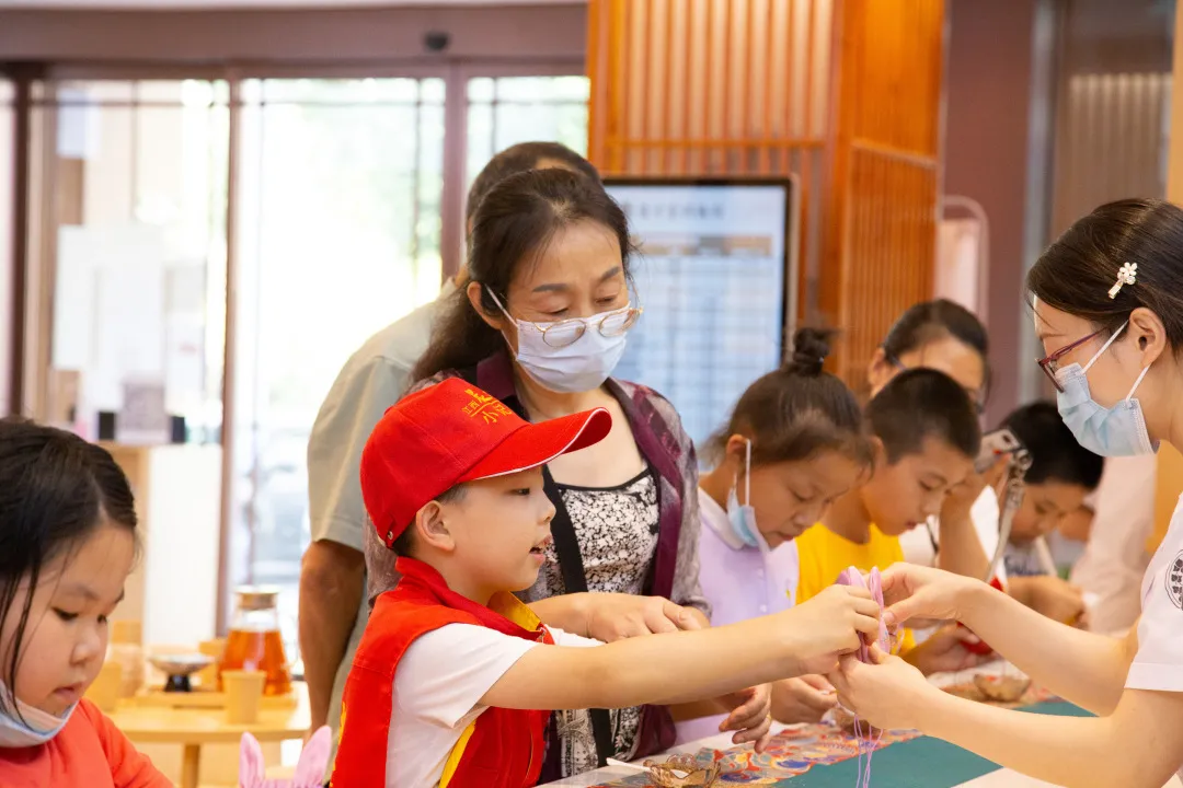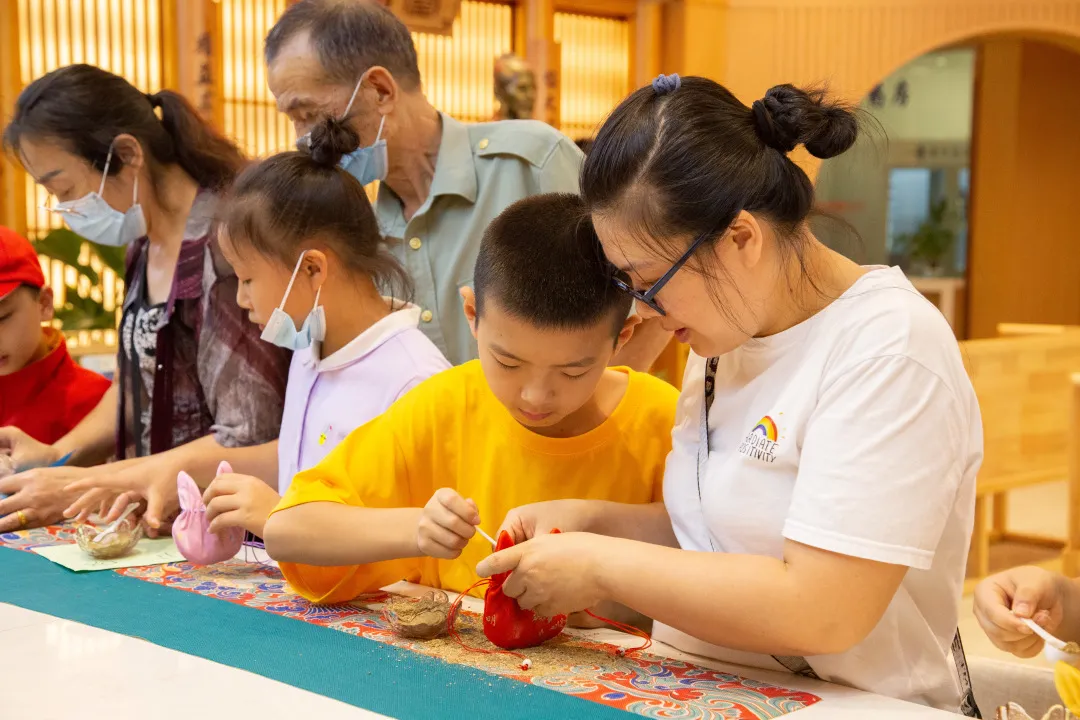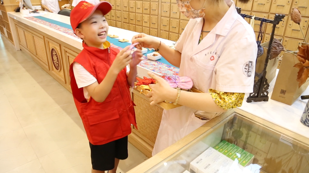 在贡方堂医师一对一的指导下,孩子们塞药材、绑细带、封口,不多时,一个个精致小巧的中药香囊便诞生了。