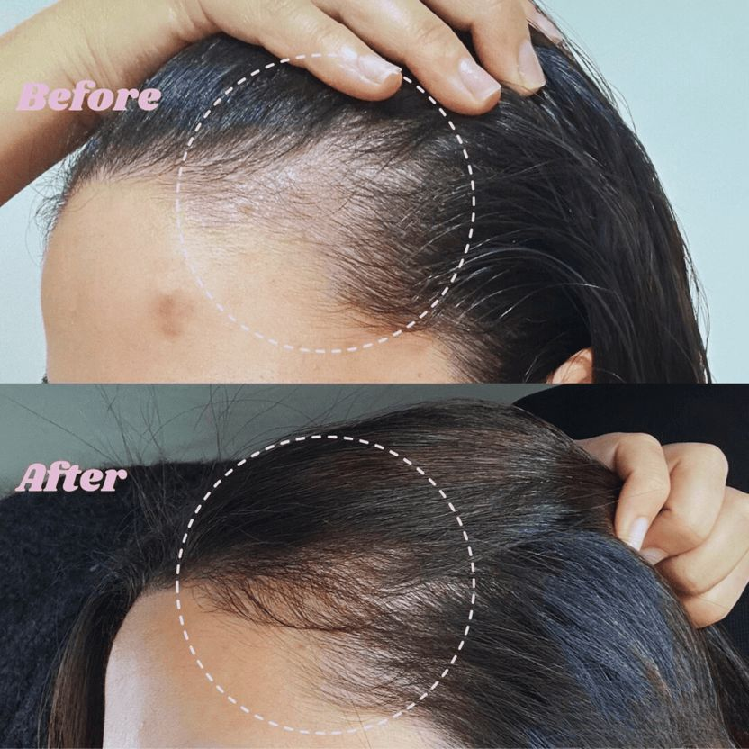 结果:服药2周后,掉发减少到每天30-40根,精神好转;继续调理1个月,发际线冒出细小绒毛,发缝变窄;3个月后,头发浓密许多。